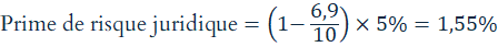- un score juridique de 7/10 conduit à une prime de 1,5 %,