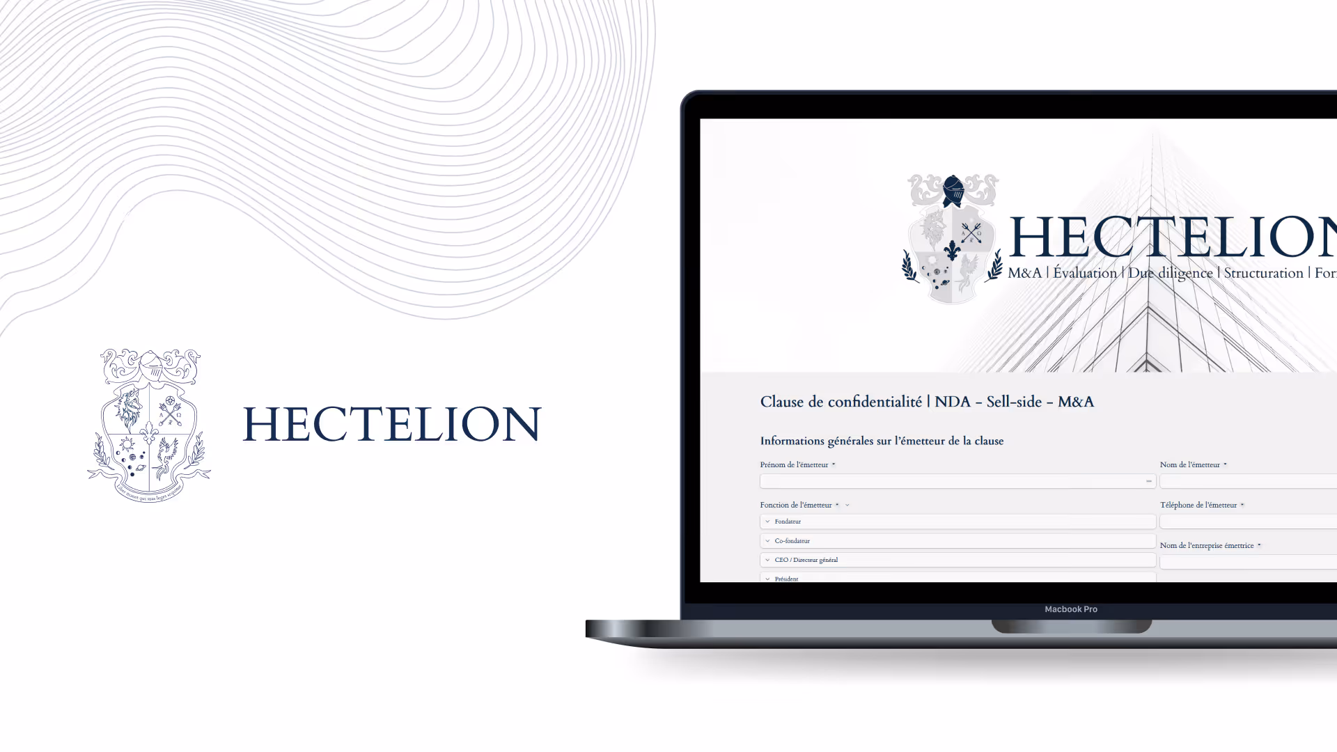 Hectelion propose une solution automatisée de génération d’accord de confidentialité (NDA) pour les opérations de cession (sell-side), reposant sur des processus d’intelligence artificielle, permettant de produire un document personnalisé à partir des informations fournies.